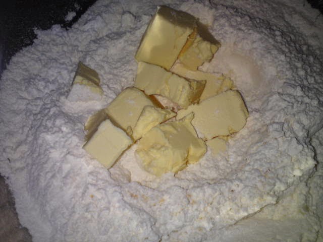 - Cut and rub in butter with your finger tips or dough cutter till it resembles bread crumbs.