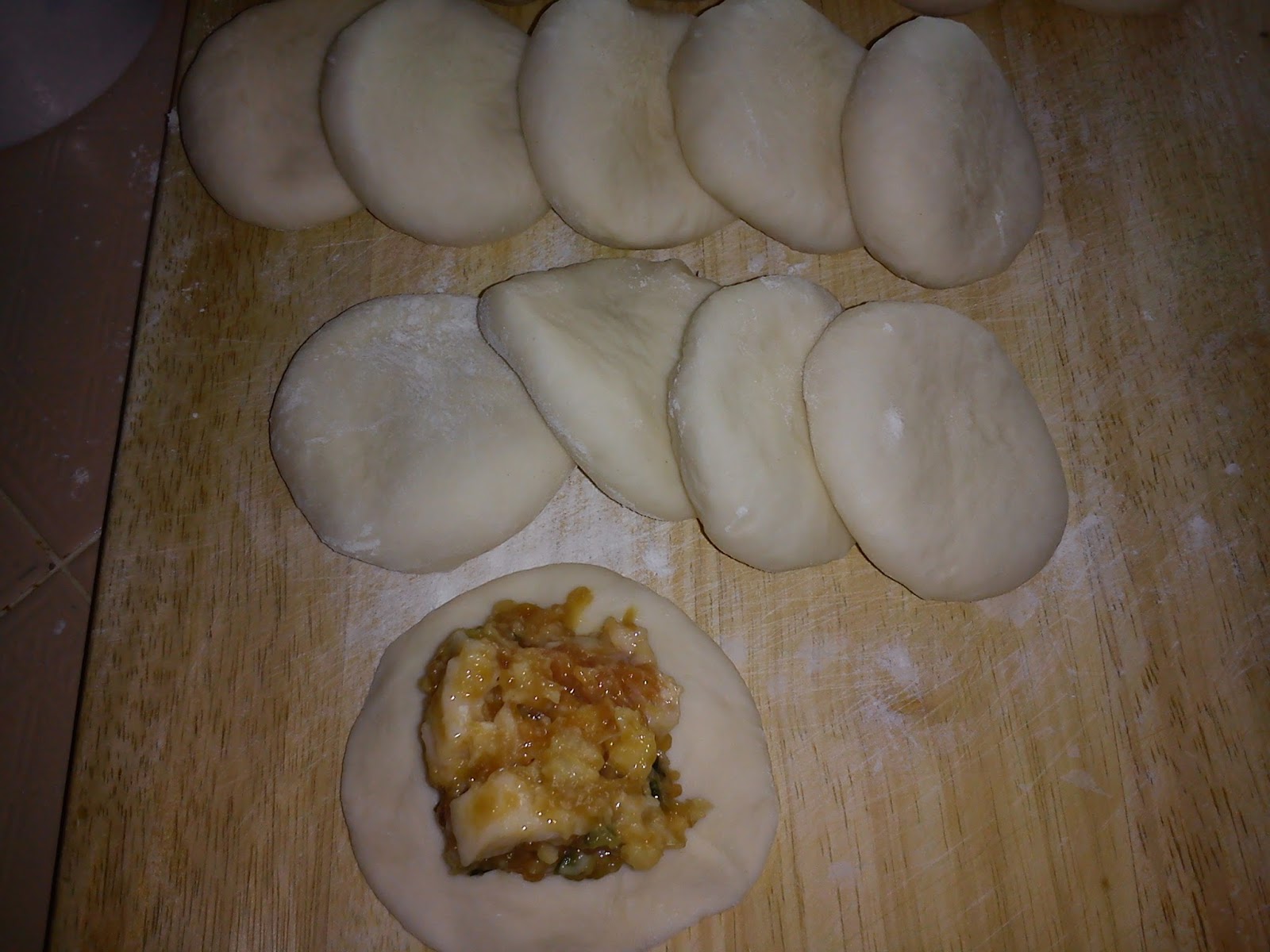 - Wrap filling with each flatten dough. Gather the edges and shape into pleated paus or round balls. Place on parchment or greased proof paper in the steaming tray.