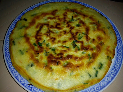 This pancake is tasty, soft and moist but firm. Serve with chilli sauce, tomato sauce or mayonnaise would be great accompaniment. For vegetarian version, just omit the Chinese sausage [Lap Cheong].